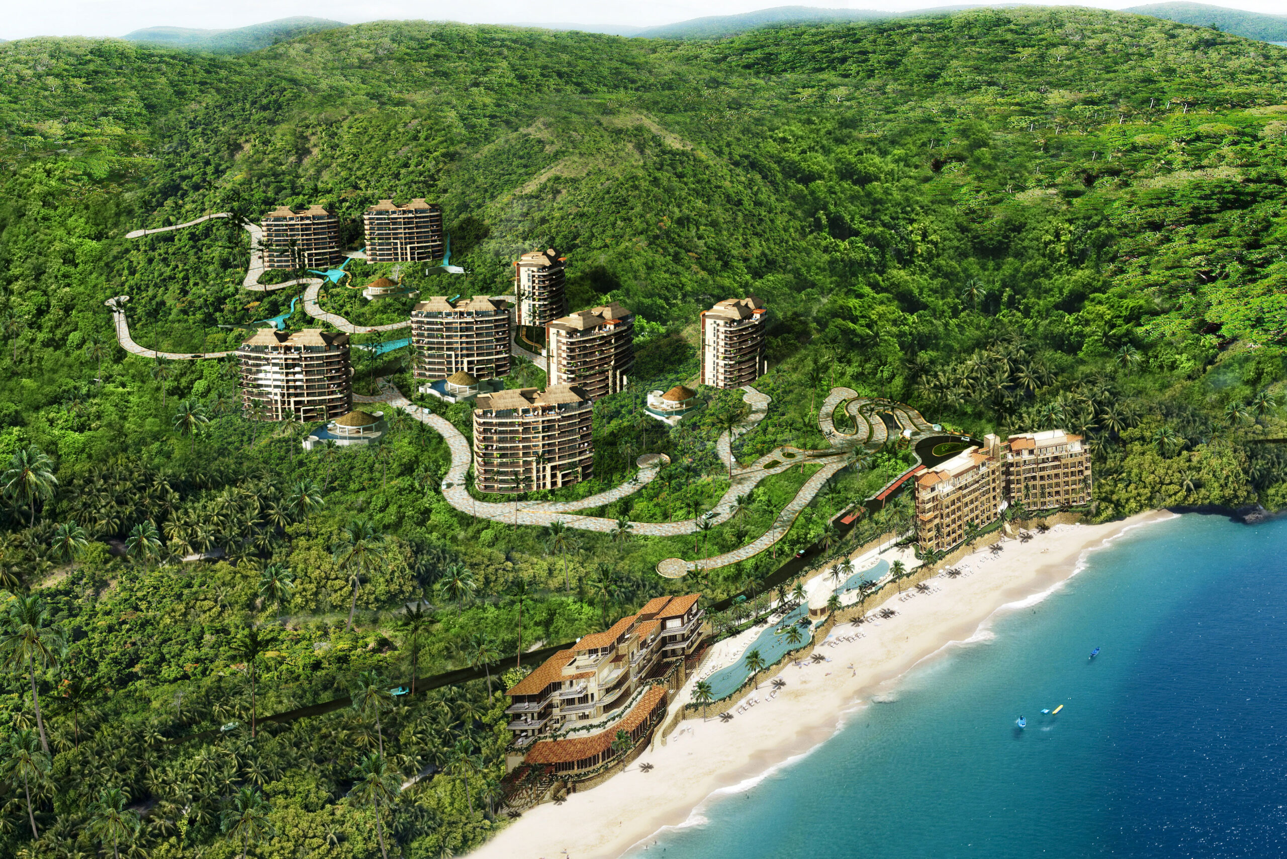 Garza Blanca es otro claro ejemplo de la gran capacidad de resolución de problemas del que nuestro equipo tanto se destaca. Al inicio, se quería tomar toda esa gran extensión de tierra en la bella Sierra Madre Occidental y construir un complejo de villas unifamiliares. Sin embargo, al recibir el proyecto, éste se cambió drásticamente a un desarrollo de ocho torres, todas con 14 pisos para un gran total de más de 320 unidades, todas con acceso al mar y acabados de lujo. Con este planteamiento se obtuvieron varios puntos clave: