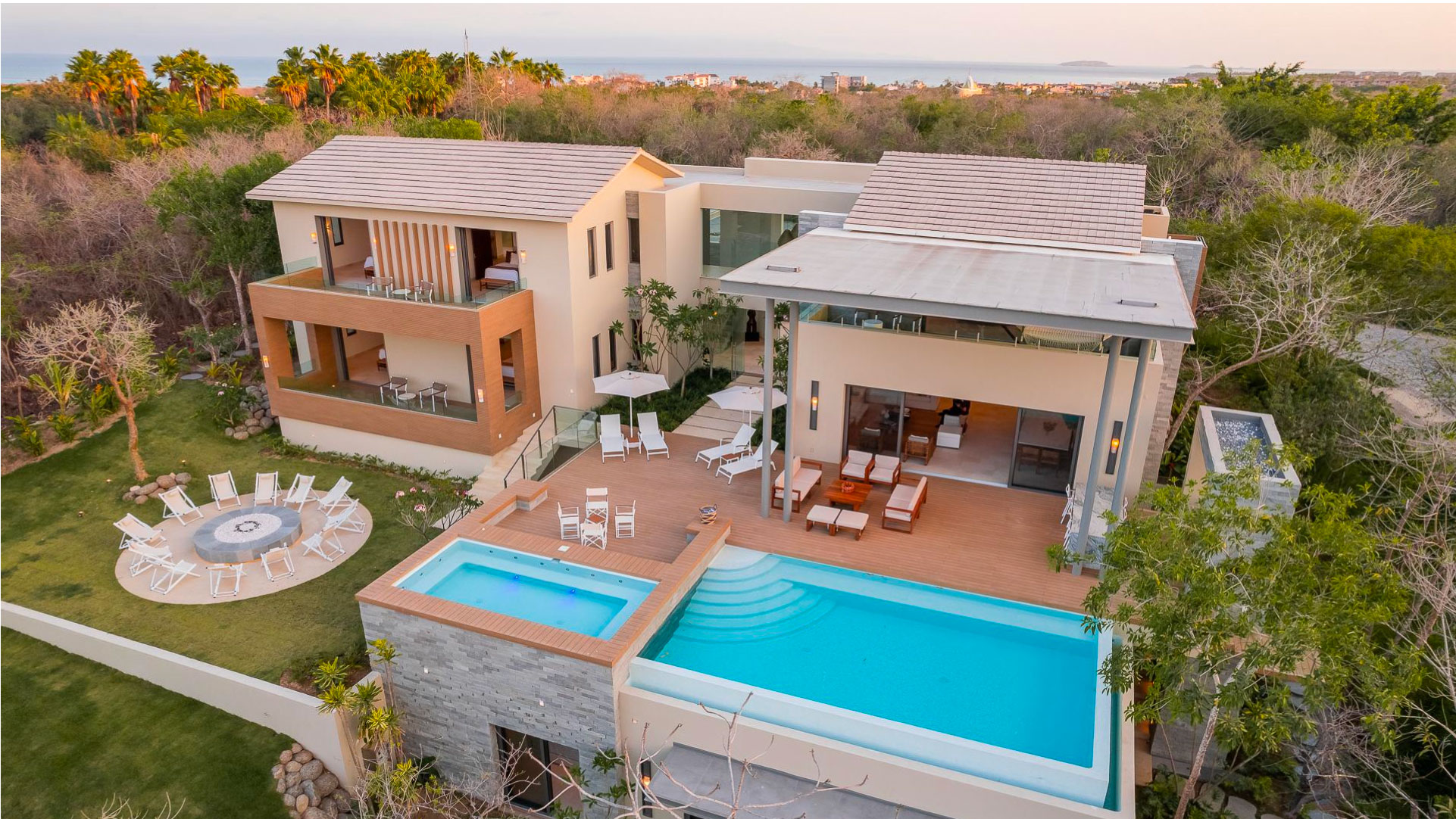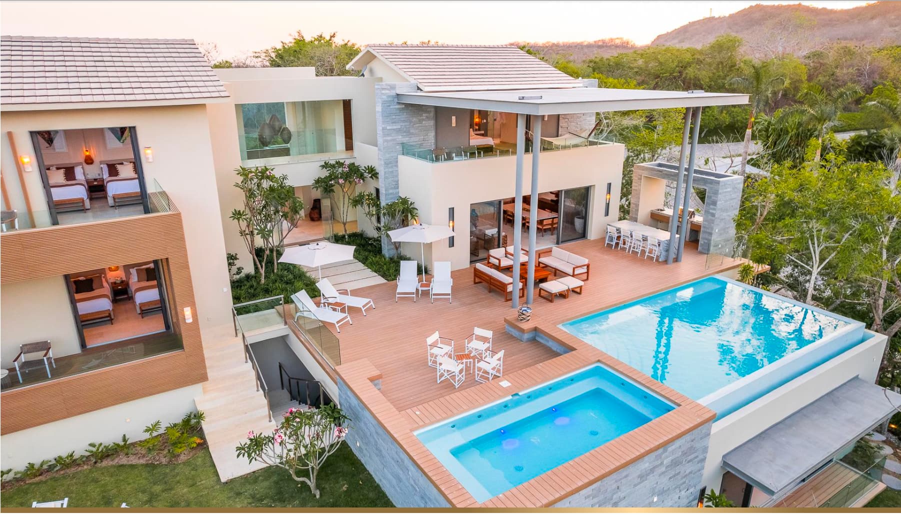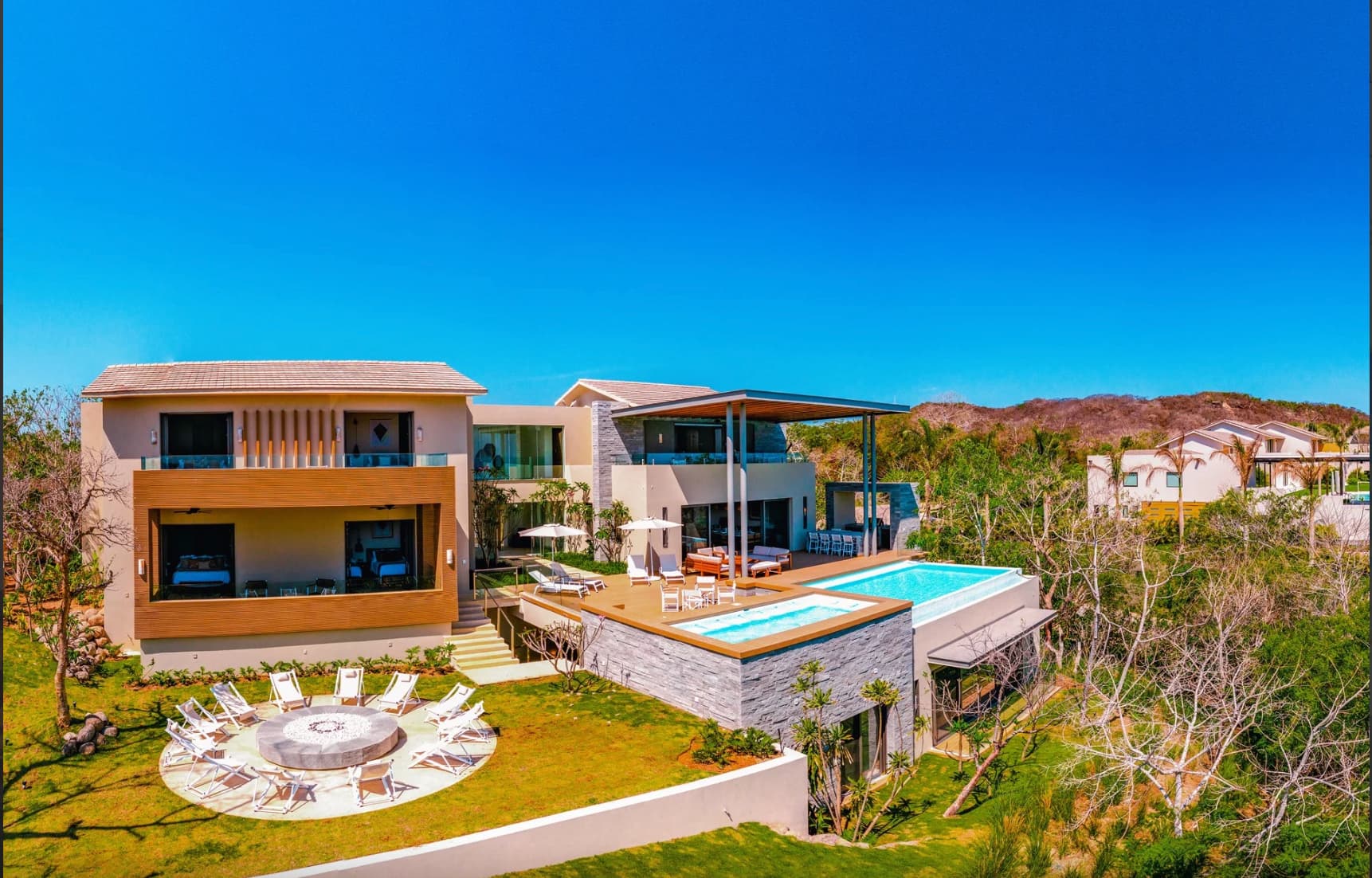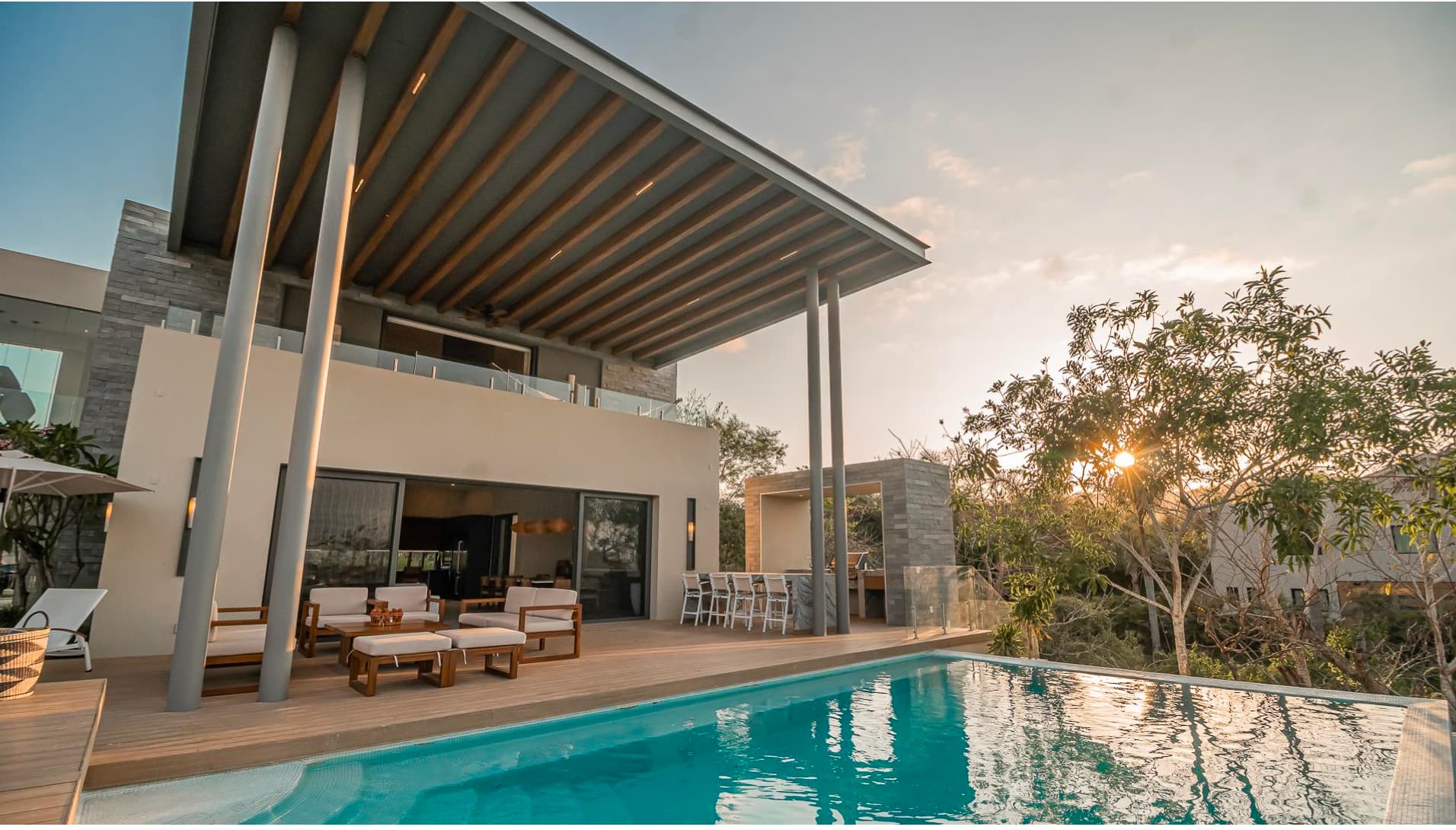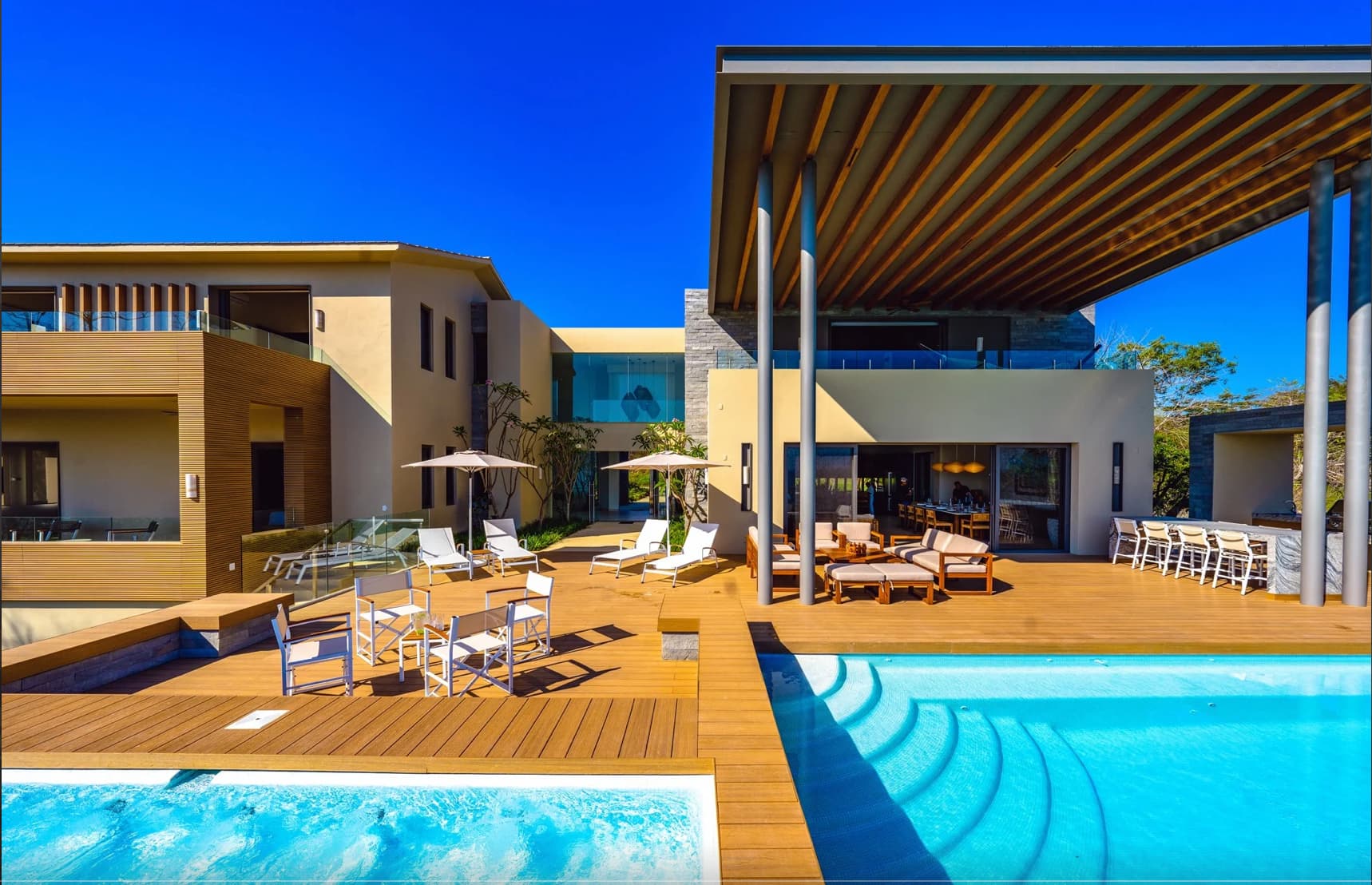 Envuelta entre la vegetación tropical de Punta Mita, Casa Alba crea un entorno en el cual los huéspedes se sienten en contacto con la naturaleza para tener momentos de privacidad y relajación. Dentro del gran desarrollo de Punta Mita, península de 1500 acres con resorts de lujo como Four Seasons y St Regis, en el exclusivo y boutique fraccionamiento KUPURI, Casa Alba cuenta con seis habitaciones, alberca infinity, jacuzzi, un fire pit romántico, sala de juegos y acceso directo a la playa y a los clubs de playa más exclusivos de la región. Su arquitectura aunque contemporánea, emplea elementos como “el ojo de Dios” de la cultura Huichol en la puerta principal, y vegetación nativa para crear una composición digna de una estancia inolvidable.
